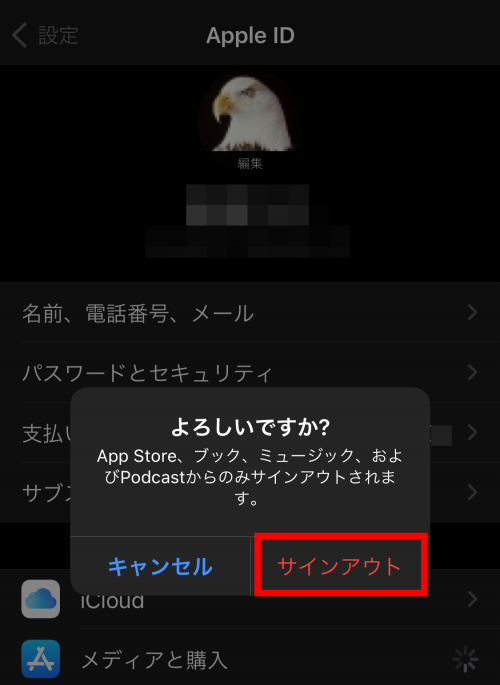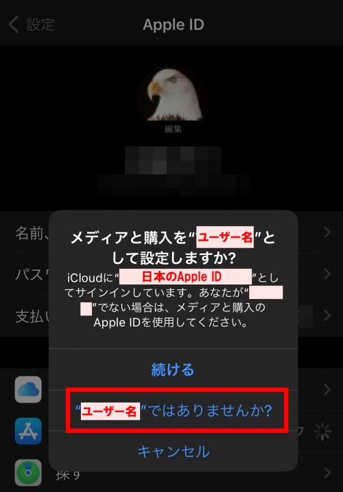 ダウンロード、アップデートが終わったら、また同じ方法で今度は日本のApple IDに戻してください。